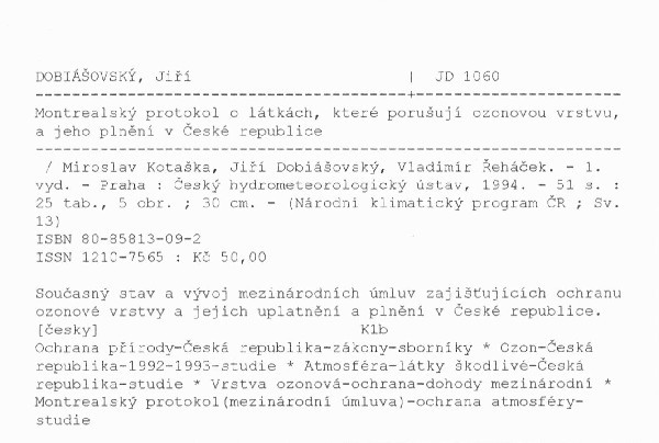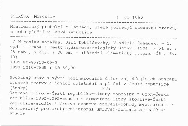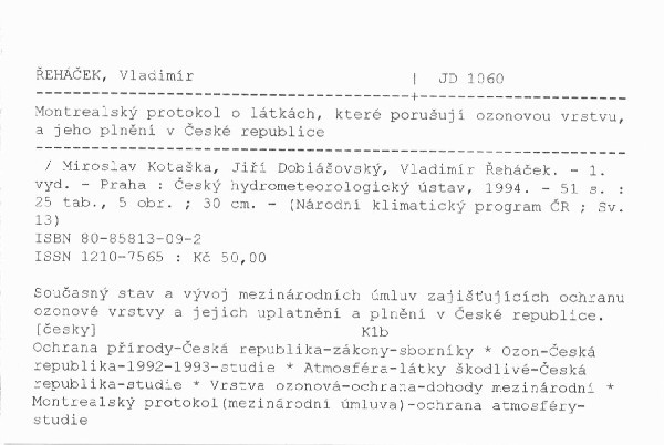 Název | Montrealský protokol o látkách, které porušují ozonovou vrstvu, a jeho plnění v České republice |
