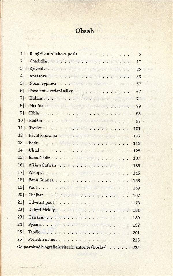 Svědectví o životě a skutcích Muhammada, posla Božího, zvěstovatele islámu, zakladatele první muslimské obce v Medíně. Jedná se o dobový dokument, síru - posvátnou biografii proroka, jehož autorství (dnes považováno badateli za sporné) je připisováno Ibn Ishákovi (704-767). Je zde líčena jak Prorokova zbožnost a oddanost Alláhovi, tak i bojovnost, ale také mužnost - soukromý život. Skutky Muhammada jsou muslimy uznávány za hodné následování. Český překlad vychází ze zkrácené verze Michaela Edwardese z roku 1898 a doplněn o doslov Z. Müllera.