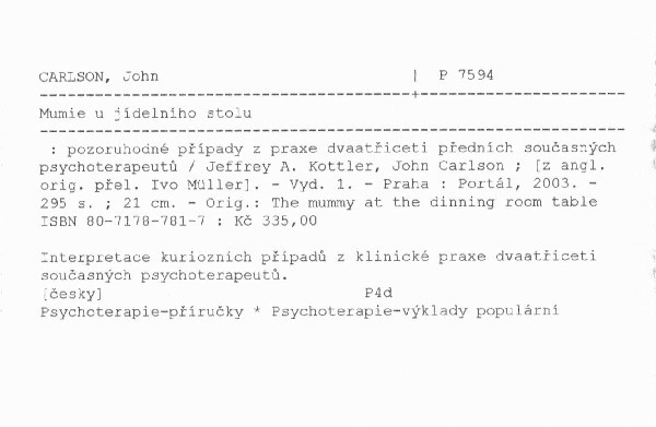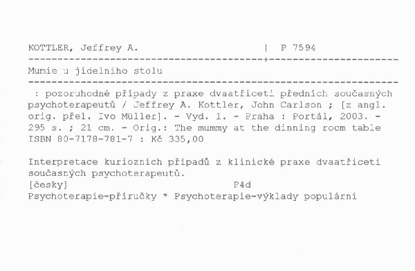 | Autor | Jeffrey A. Kottler, Jon Carlson ; [z angl. orig. přel. Ivo Müller] |