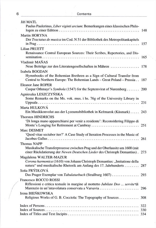 Sborník vybraných příspěvků ze stejnojmenné mezinárodní muzikologické konference konané 23. až 26.8. 2006. Příspěvky věnované hudební kultuře českých zemí a přilehlých regionů do roku 1620 představují aktuální pramenný výzkum v oboru.