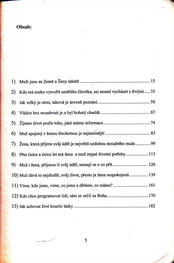 Vysoká rozvodovost, nefungující partnerské vztahy, fyzické a duševní násilí mezi muži a ženami - to vše jsou následky toho, že lidé přestali uznávat zákony přírody a moudrost Bible. Vytvořili si svá vlastní umělá pravidla pro řízení společnosti, poslouchají chybná doporučení psychologů a ve světě se šíří nadvláda zlých, věčně nespokojených, násilných žen, které dohánějí muže k zoufalství. K těmto závěrům dospěl autor knihy na základě vlastních životních zkušeností, kdy marně hledal řešení skrze populární knihu Johna Graye Muži jsou z Marsu, ženy z Venuše. Teprve osudové setkání s životním učitelem Tomášem mu však umožnilo pochopit celý problém: Grayova kniha je zhoubná stejně jako chování dnešních žen-Venuší. Je třeba se vrátit k modelu partnerských a mezilidských vztahů podle Bible a přírody - moudrý muž má vést, řídit ženu a správná žena musí muže poslouchat,přijmout svůj ženský úděl. Dosti svérázná teorie o vztazích mezi muži a ženami, místy až patologická (např. ženy jsou primární příčinou alkoholismu, násilných činů u mužů včetně vražd, samy se běžně dopouštějí na mužích násilí). Celé pojednání je postaveno na kritice vybraných myšlenek ze zmíněné knihy J. Graye, ovšem vytržených z kontextu a interpretovaných v duchu autorovy filozofie tak, aby bylo jasně vidět jejich špatnost. Ostatně stačí se podívat na několik citátů či básní samotného autora a čtenář si může udělat vlastní úsudek o kvalitě díla... 18. 8. 2003 Sára L2b