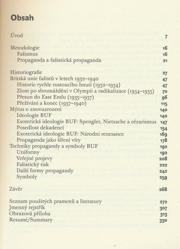 Studie mapuje historii, ideologii a formy propagandy Britské unie fašistů působící na britské politické scéně v letech 1932-1940.