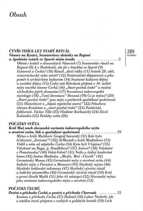 Tři komparativní studie věnované pohanským a zejména indoevropským kořenům nejstarších českých mýtů ve srovnání s mytologií některých evropských národů.