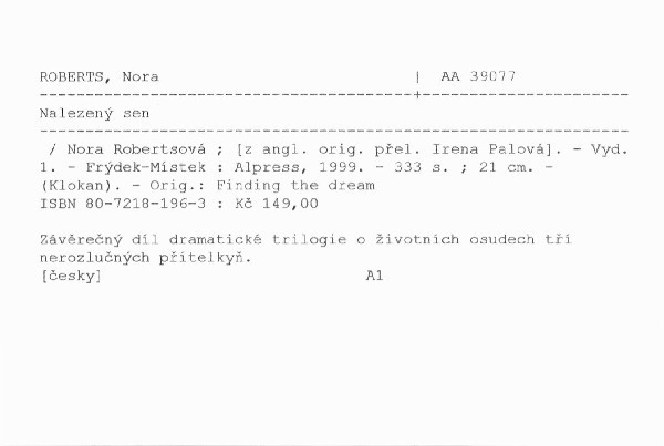 | Autor | Nora Robertsová ; [z angl. orig. přel. Irena Palová] |