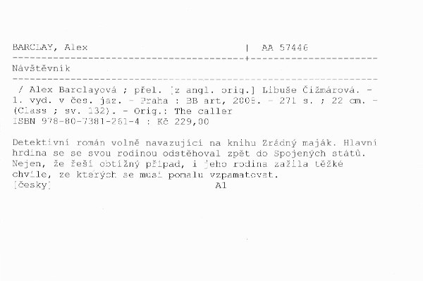 Autor | Alex Barclayová ; [z angl. orig.] přel. Libuše Čižmárová |
