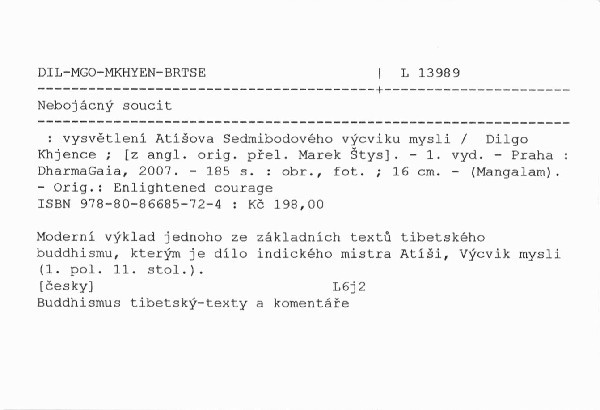 | Autor | Dilgo Khjence Rinpočhe ; [z angl. orig. přel. Marek Štys] |