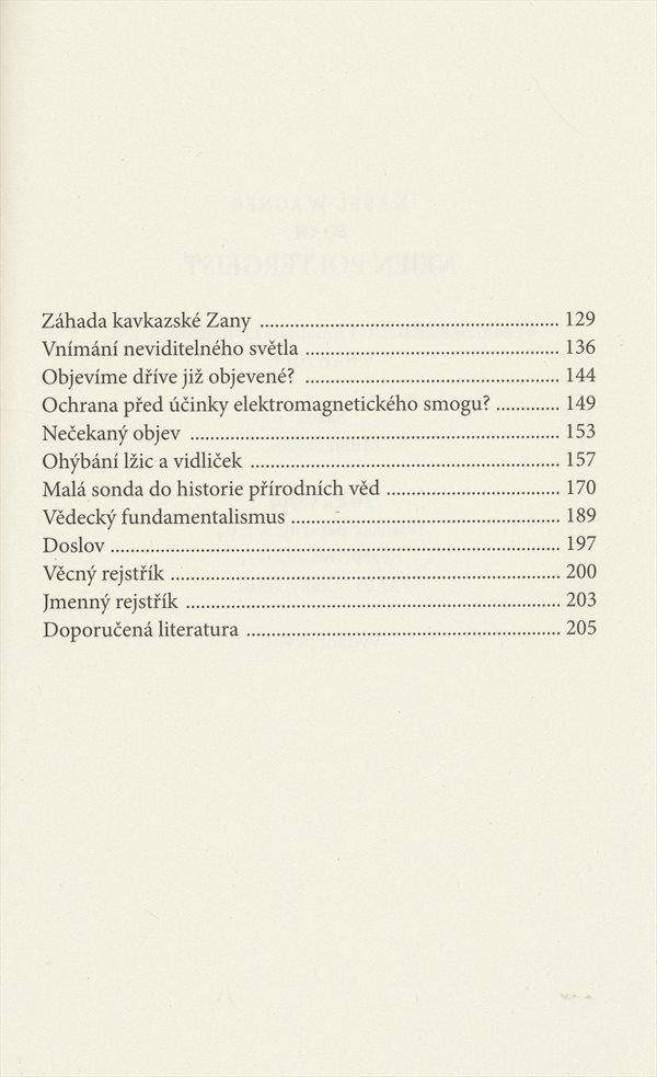Text knihy, který potěší i milovníky záhad, vychází z původních článků autorova blogu, jenž byl Národní knihovnou ČR zařazen do České národní bibliografie a je archivován v rámci jejího projektu WebArchiv. Záhadné jevy tím, že jsou nahlíženy z pozice objektivního skepticismu, autor představuje čtenářům v jiném světle, než v jakém jej prezentují naše sdělovací prostředky. Navíc zde čtenáře seznamuje s řadou historických faktů a upozorňuje laickou i odbornou veřejnost na pozapomenuté poznatky významných vědců průkopnické éry moderního věku. Nakladatelská anotace.