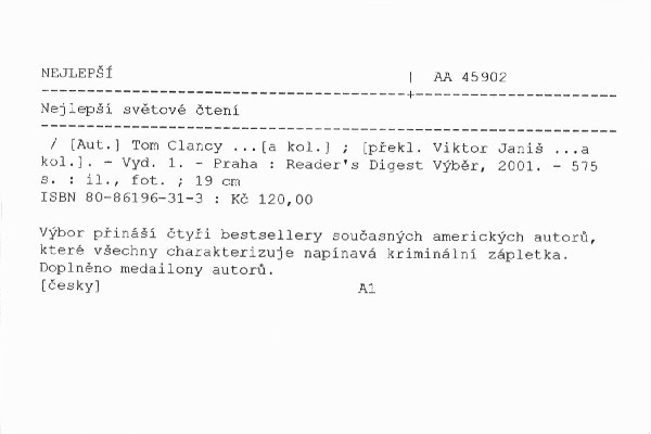Vydání: Reader's Digest Výběr 2001 | Jazyk: čeština | Signatura: AA 45902