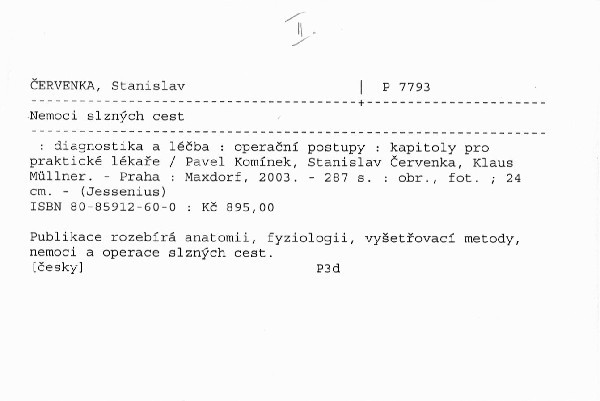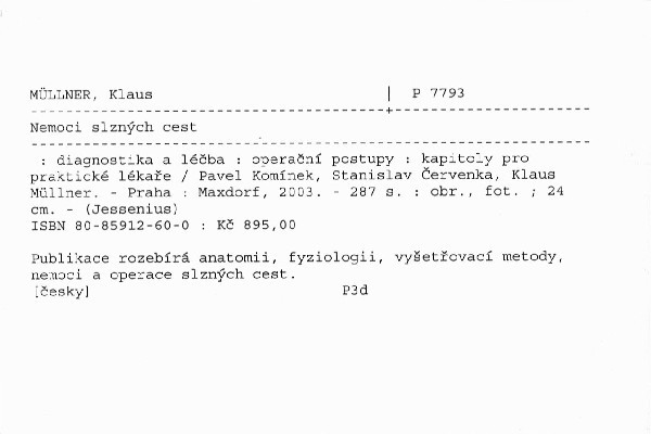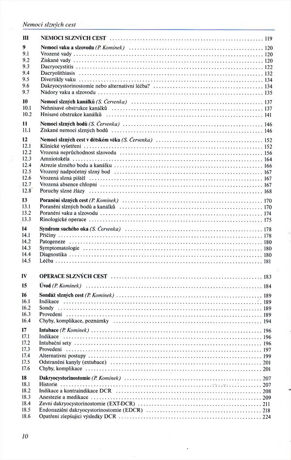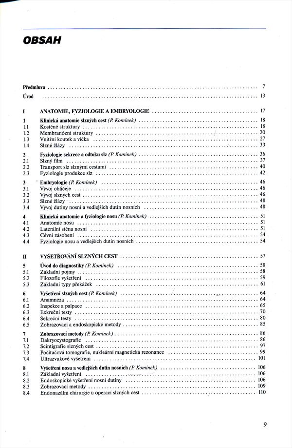 Publikace rozebírá anatomii, fyziologii, vyšetřovací metody, nemoci a operace slzných cest.