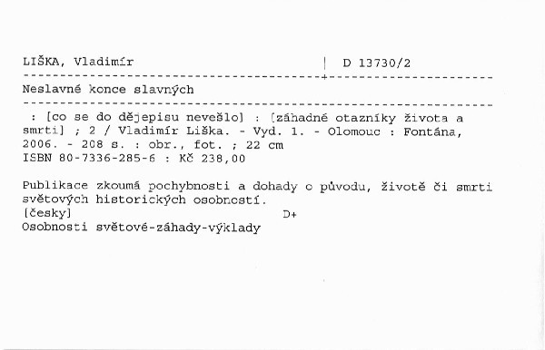 | Podnázev | [co se do dějepisu nevešlo] : [záhadné otazníky života a smrti] |