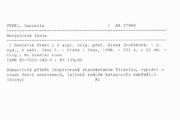 | Autor | Danielle Steel ; z angl. orig. přel. Alena Dvořáková |