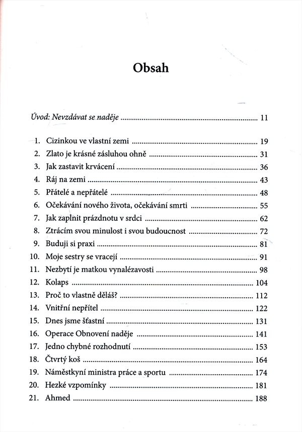 V knize autorka vypráví o svém životě, o dětství a mládí, které prožila v Africe a následně pak o studiích medicíny, které absolvovala v tehdejším Sovětském svazu. Hawa Abdiová se po ukončení studií vrátila do rodného Somálska. Tam začala krátce působit jako pediatrička, později pak jako gynekoložka. Sama založila a začala se svými dcerami provozovat nemocnici a školu v největším táboře pro vysídlené somálské občany v zemi, v němž za celou dobu jeho existence našlo útočiště skoro 90 000 lidí.