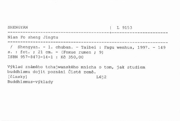 Vydání: Fagu wenhua 1997 | Jazyk: čínština | Signatura: L 9153