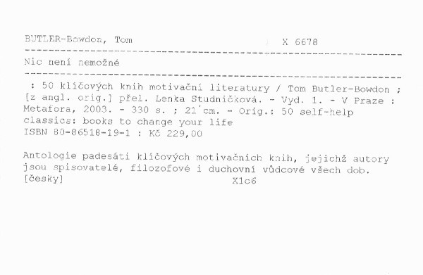 | Autor | Tom Butler-Bowdon ; [z angl. orig.] přel. Lenka Studničková |