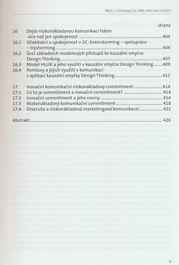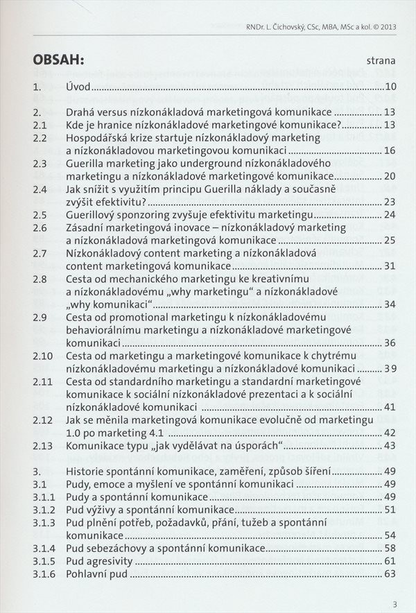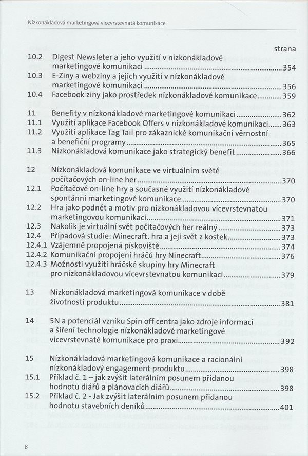 Monografie seznamuje s hlavními principy a nástroji nízkonákladové marketingové komunikace.