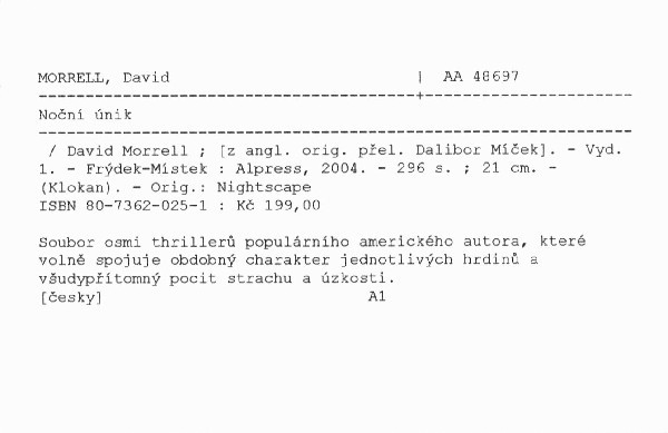 | Autor | David Morrell ; [z angl. orig. přel. Dalibor Míček] |
