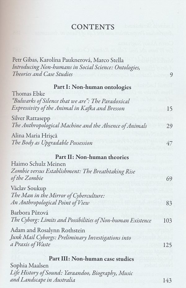 Příspěvky nahlížejí na roli a místo mimolidské sféry v současných sociálních vědách.