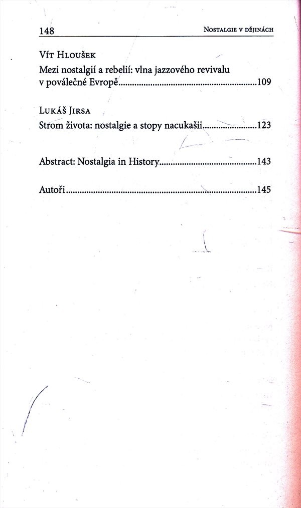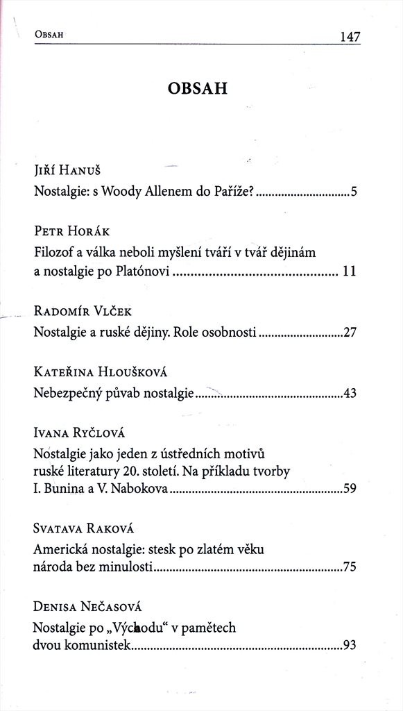 Jednotlivé příspěvky mapují různé projevy nostalgie v evropském, českém i americkém prostředí.
