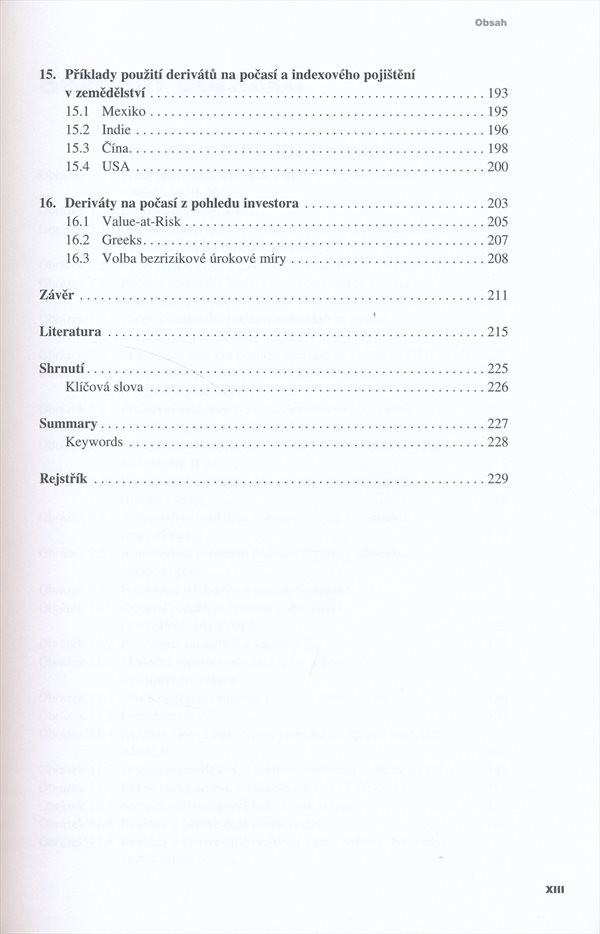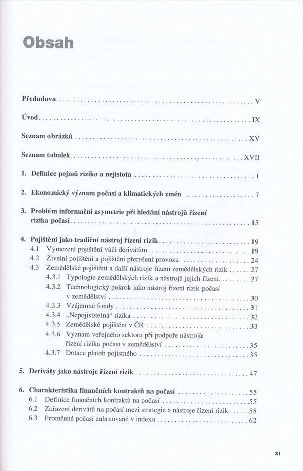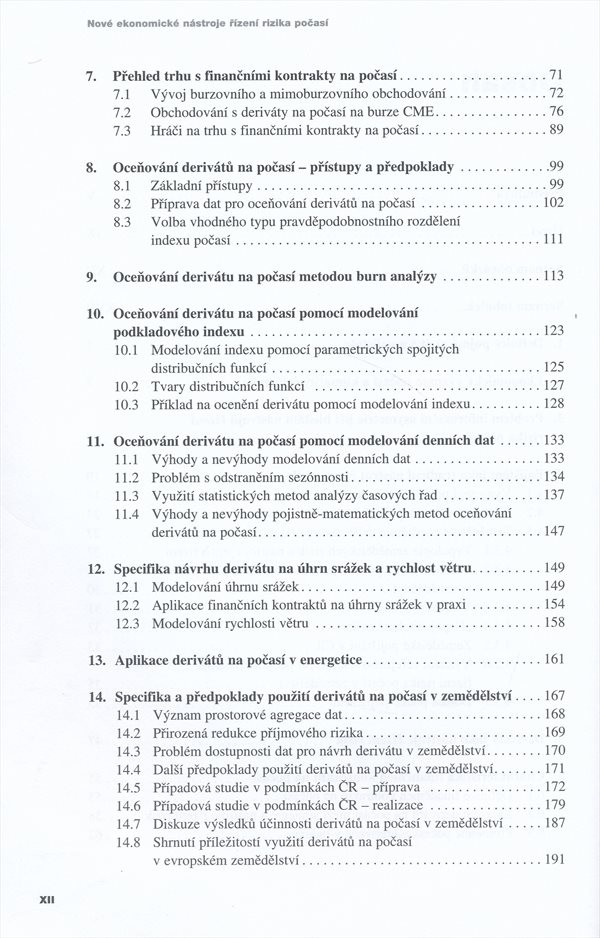 Monografie popisuje problematiku finančních kontraktů na počasí, které patří k novým nástrojům rizikového managementu.