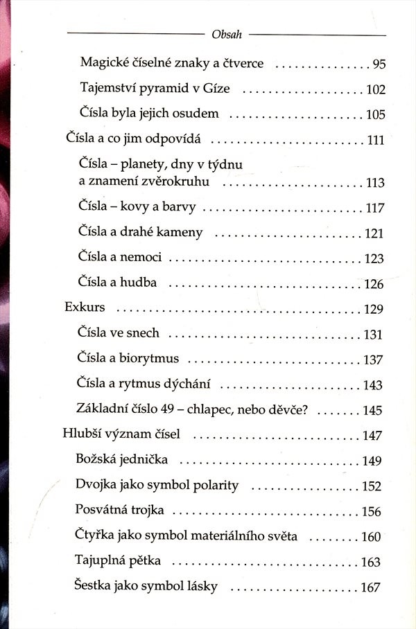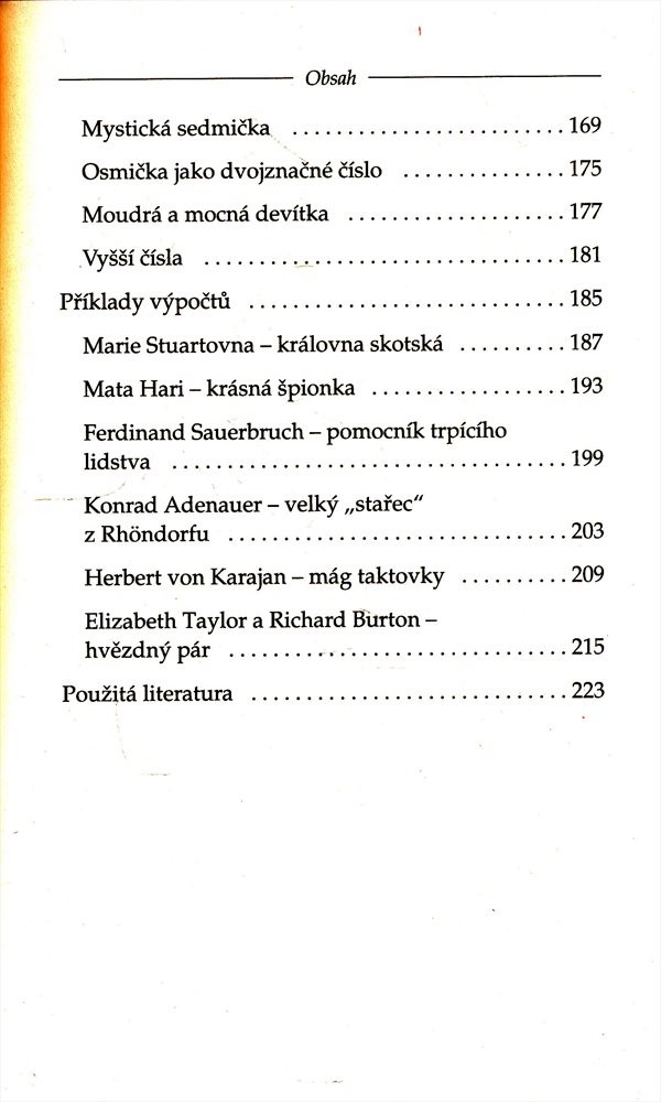 Autor seznamuje s tím, jak podle čísel zjistit charakter a osud člověka, co určuje zevnějšek i vnitřní bytost člověka, jaká jsou šťastná čísla, jak volit podle čísel partnera, povolání i bydliště. Na příkladech známých osobností (většinou z německého prostředí) ukazuje, jak lze z osobních čísel určit povahu a úspěch jednotlivce.