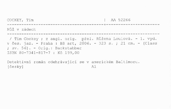 | Autor | Tim Cockey ; [z angl. orig.] přel. Růžena Loulová |