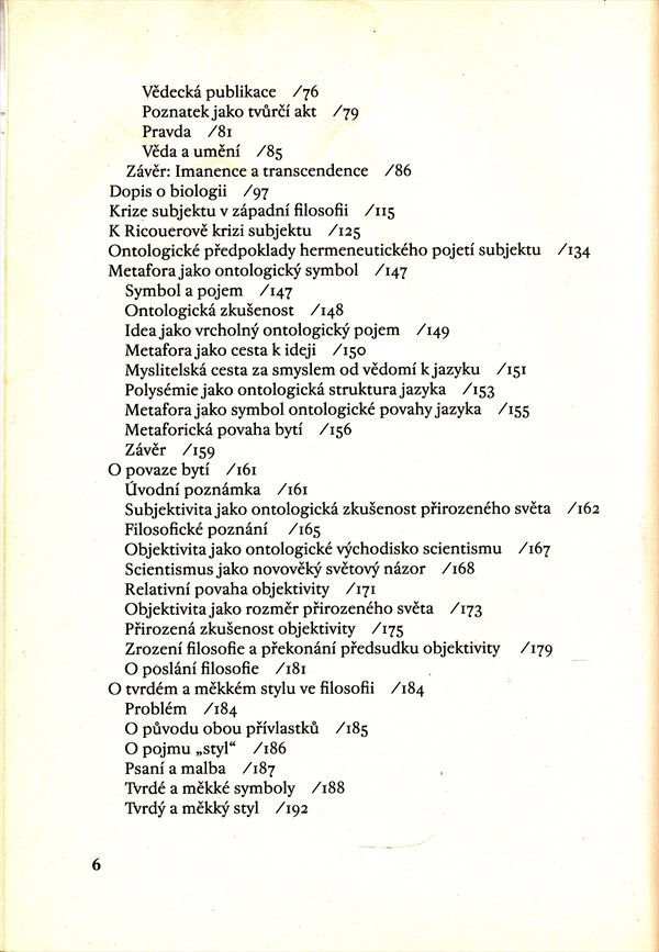 Texty představují svědectví o autorově cestě za poznáním. Většina z nich již byla vydána samizdatově v osmdesátých letech, dvě eseje pocházejí z knihy Smysl a svět a dva závěrečné texty (esej O imaginaci a pohádka O Sněhurce) vycházejí poprvé. Texty odrážejí autorovu celoživotní snahu o sblížení vědy a filozofie, dvou odlišných, nicméně vzájemně se dotýkajících forem poznání skutečnosti. Snaží se nastínit jejich vzájemný vztah, řešit problémy, do kterých se moderní věda i filozofie (viz texty vztahující se k Ricoeurově krizi subjektu v západní filozofii) dostaly. Význam vědy i filozofie pro poznání, jejich vývoj, proměny a poslání symbolicky vystihuje závěrečná pohádka O Sněhurce. Autor - přírodovědec a filozof - se snaží prosazovat nové pojetí vědy, překonávající technokratické, scientistické přístupy k životu, založené na umělých konstrukcích, schematizaci, dogmatismu, kdy není akceptována přirozenost, úsilí o pravdivé poznání živé skutečnosti. A právě v úsilí o živé poznání by vědě mohla pomoci filozofie.