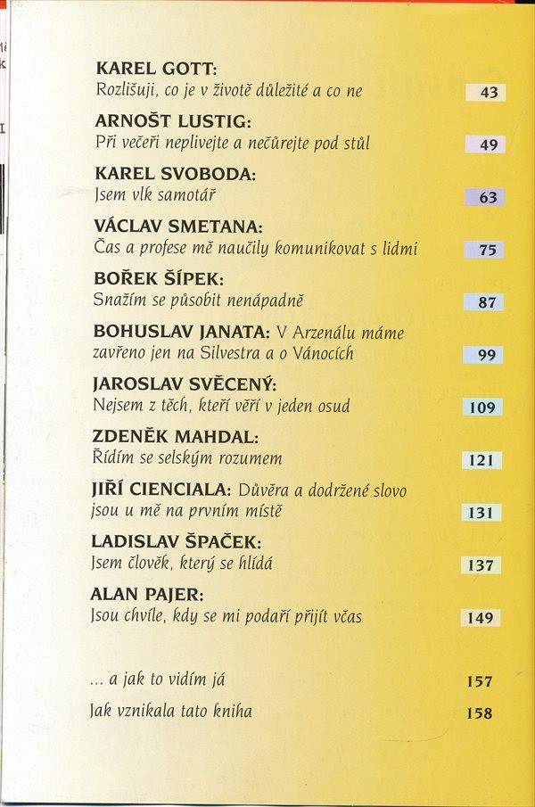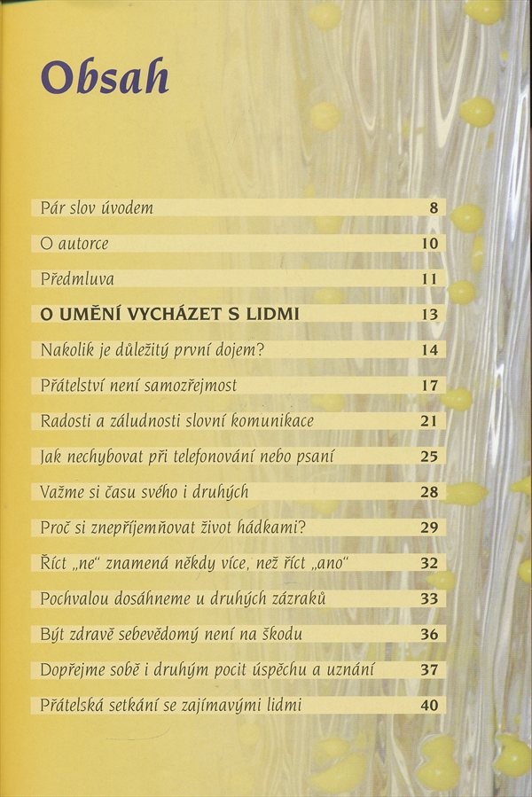 Úvodní stať o mezilidských vztazích, přátelství, společenském chování a úspěchu doprovázejí rozhovory s několika významnými českými osobnostmi.