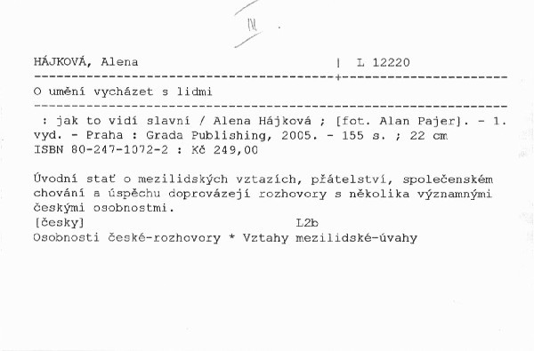 Rady české klavíristky, publicistky a vizážistky, jak jednat s lidmi jsou doplněny zkušenostmi zpěváka Karla Gotta, spisovatele Arnošta Lustiga, textaře Karla Svobody, lékaře MUDr. Václava Smetany, výtvarníka Bořka Šípka, houslisty Jaroslava Svěceného, fotografa Alana Pajera a několika českých manažerů. Kniha je provázena barevnými fotografiemi.