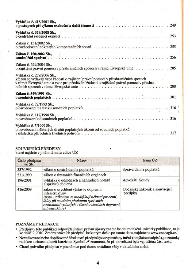 PodnázevSoudní řád správní : Rozhodčí řízení : Exekuční řád : Soudní poplatky : a další předpisy : podle stavu k 8.2.2010