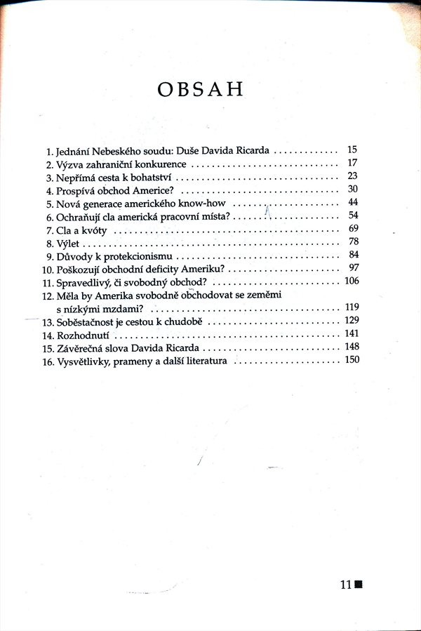 Autor této zvláštní knížky se snažil zpopularizovat dost složitý problém - zda a jak omezovat dovoz zahraničních výrobků do USA. Na tuto ekonomickou otázku jsou různé odborné názory, protože dopad cel a kvót na zaměstnance a obyvatele je dalekosáhlý v oblasti zaměstnanosti, koupěschopnosti, sociálního postavení i v dalších oblastech. Autor knížky se rozhodl složité téma co nejvíce zjednodušit a vysvětlit laikovi, a proto zvolil formu fiktivního dialogu, v němž rozmlouvá anglický ekonom 19. století D. Ricardo s americkým ředitelem továrny na výrobu televizí. Pro ještě větší zjednodušení sáhl autor k časovému posunu - ředitele, pracujícího v 60. letech 20. století, zavádí ekonom do Ameriky přelomu 20. a 21. století - a to proto, aby lépe pochopil, jaké následky by měl protekcionismus v budoucnosti. Laický čtenář je tak společně s ředitelem poučen názorně o dopadech, jaké může v budoucnu způsobit násilné omezování volného trhu v USA. G9f4 sosnovcj