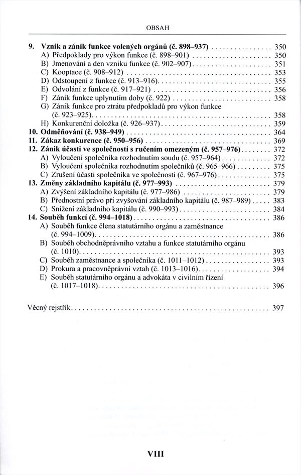 Přehled judikatury vztahující se k obchodním a kapitálovým společnostem. Jedná se o soudní rozhodnutí učiněná před 1. lednem 2014, kdy nabyl účinnosti zákon o obchodních korporacích.