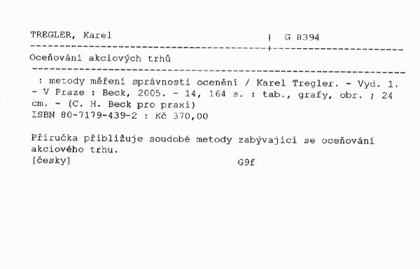 Příručka přibližuje soudobé metody zabývající se oceňování akciového trhu.