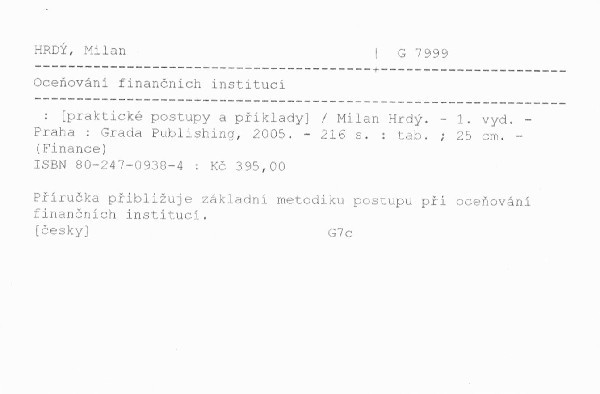 Příručka přibližuje základní metodiku postupu při oceňování finančních institucí.