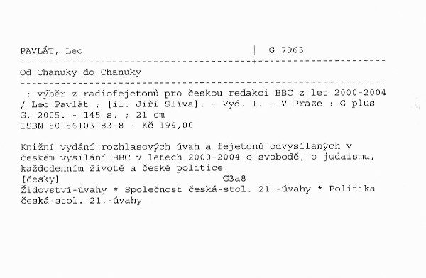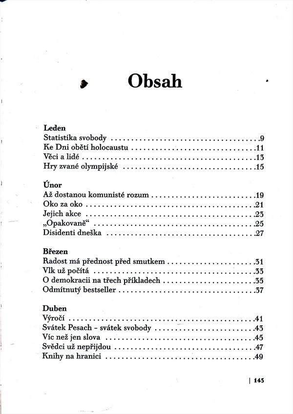 Knižní vydání rozhlasových úvah a fejetonů odvysílaných v českém vysílání BBC v letech 2000-2004 o svobodě, o judaismu, každodenním životě a české politice.