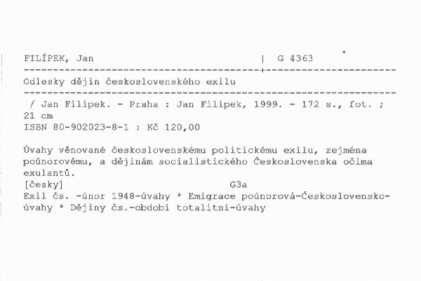 Vydání: Jan Filípek 1999 | Jazyk: čeština | Signatura: G 4363