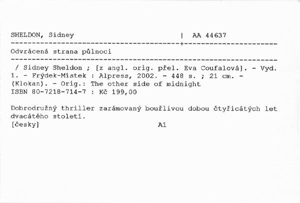| Autor | Sidney Sheldon ; z angl. orig. přel. Eva Coufalová |