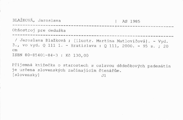 | Autor | Jaroslava Blažková ; [ilustr. Martina Matlovičová] |