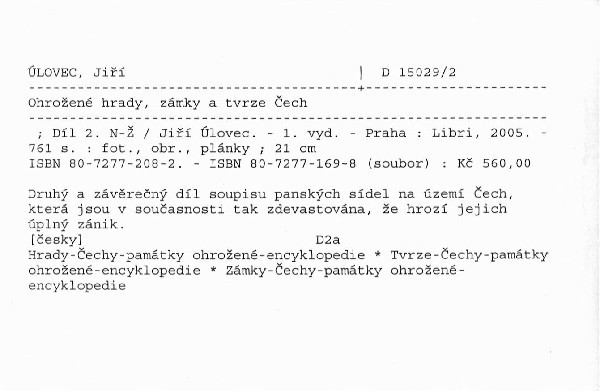 | Název | Ohrožené hrady, zámky a tvrze Čech |