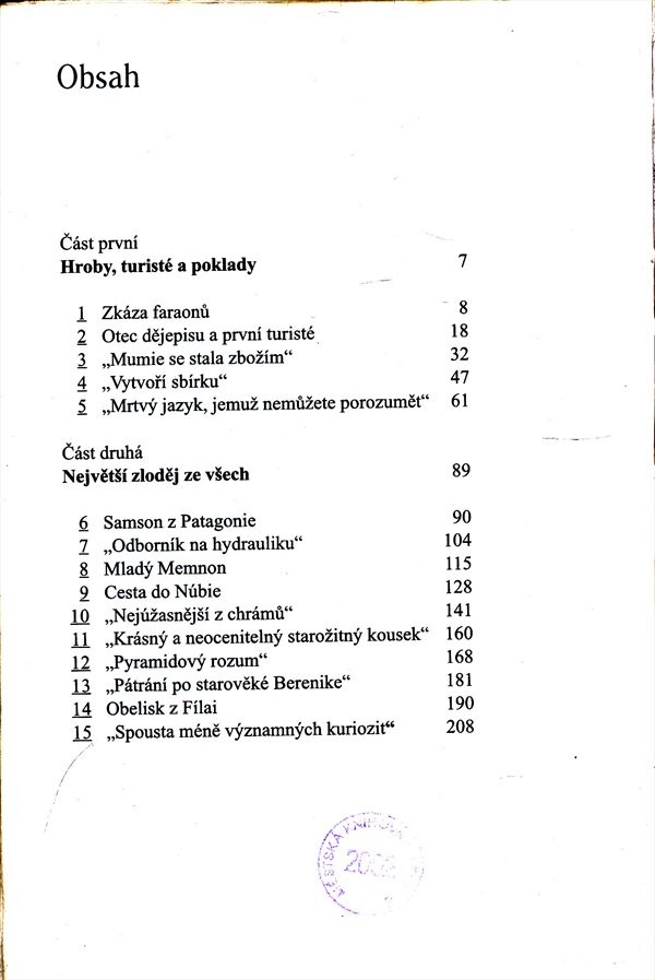 Bohatství a kultura slavné Egyptské říše nedaly spát lidem různého ražení ani tisíce let po jejím zániku. Nilská delta byla svědkem významných a úspěšných archeologických výprav, podvodnických rejdů různých hochštaplerů či přímo zločineckých akcí vykradačů hrobek, ale i mohutných nájezdů poznáníchtivých nebo jen snobských turistů. Spolu s popisem této egyptské "zlaté horečky", spadající zejména do devatenáctého století, se kniha jaksi mimochodem a nenásilně věnuje zajímavým sondám do samotné historie starého Egypta.