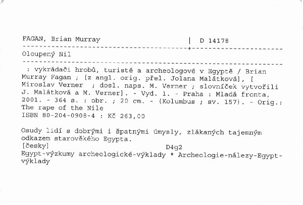 | Autor | Brian Murray Fagan ; [z anglického originálu přeložili Jolana Malátková], [Miroslav Verner] |