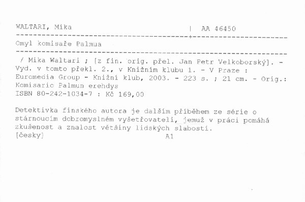 | Autor | Mika Waltari ; [z fin. orig. přel. Jan Petr Velkoborský] |