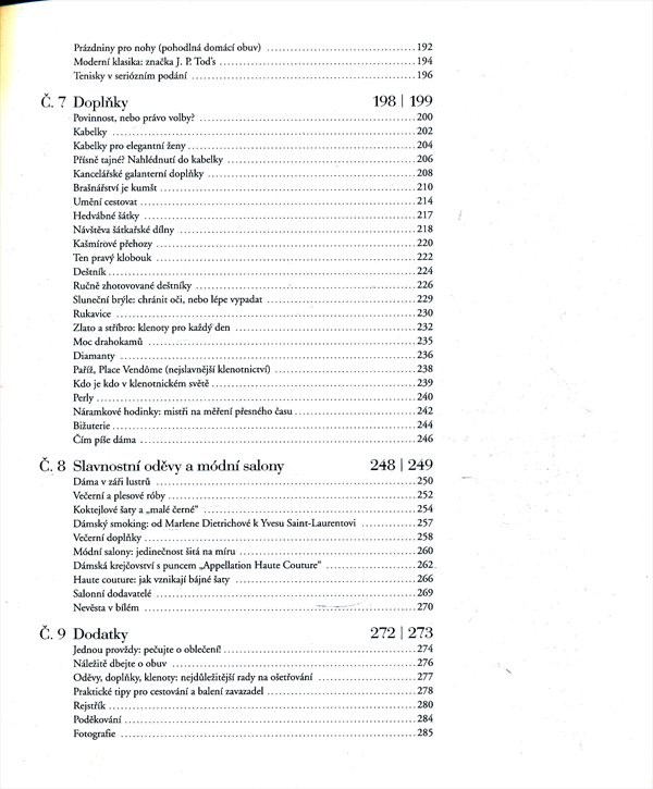 Kniha se věnuje historické i moderní dámské módě nejvyšší jakosti, klasickému stylu oblékání i jeho návrhářům a tvůrcům.
