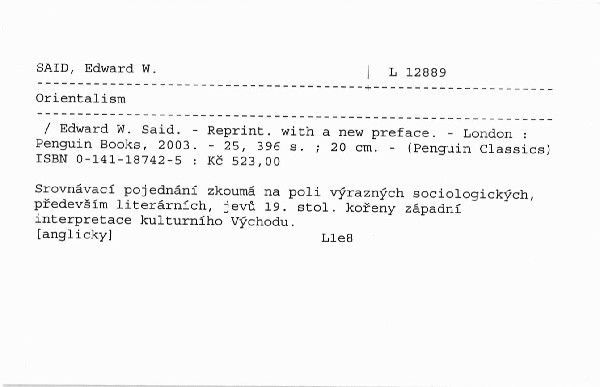 Srovnávací pojednání zkoumá na příkladech výrazných sociologických, především literárních, jevů 19. stol. kořeny západní interpretace Orientu.