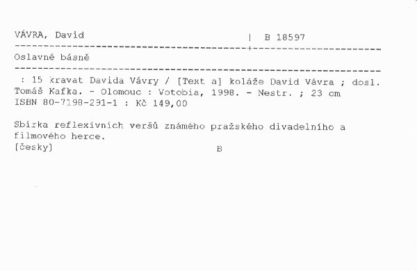 | Podnázev | 15 kravat Davida Vávry |