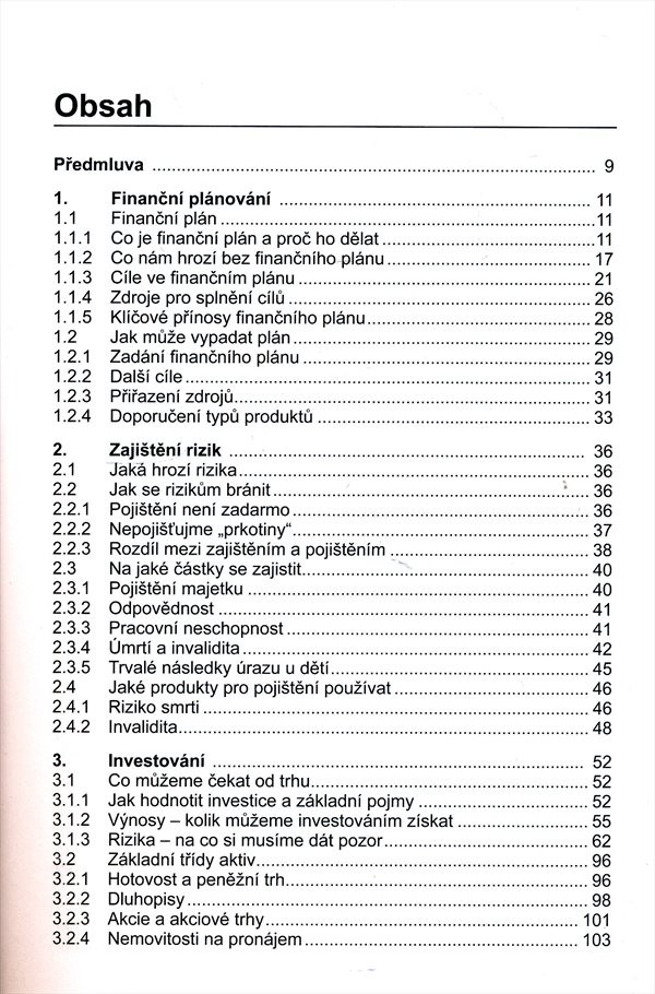 V knize se dozvíme, jak nakládat se svými financemi, jaké jsou možnosti jejich investování, včetně rizik s investicemi spojených. Autoři stručně představují jednotlivé finanční produkty. Zabývají se také možnostmi financování bydlení a pojištění. Kniha je určena nejen studentům a finančním poradcům, ale i všem, kteří chtějí výhodně a bez zbytečných chyb investovat své peníze.