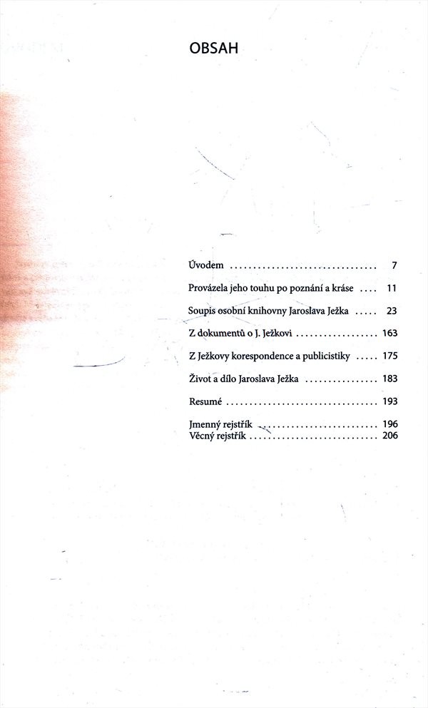Autoři zdokumentovali dochovaný komplet Ježkovy knihovny s pozoruhodnou důkladností, jejich soupis obsahuje kromě knih a notových materiálů (2263 položek) také výběr dalších tiskovin, především notýsků a diářů s různými vpisky a poznámkami, neboť soupis osobní knihovny je obohacen o místopisné sondy do dalších institucí a soukromých archívů se stopami Ježkových aktivit a částí pozůstalosti. Obsah knihy vhodně doplňuje malá fotografická příloha, ukázky z Ježkovy korespondence a publicistiky a stručný vhled do života a díla skladatele. K orientaci v katalogu přispívá také jmenný rejstřík v samotném závěru publikace.