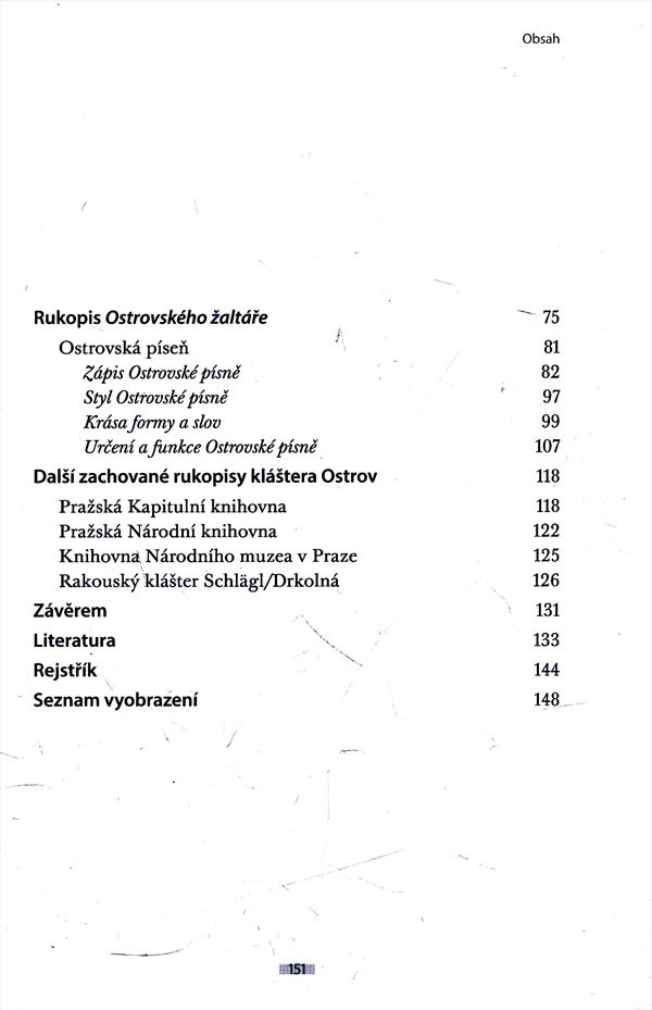 Studie věnovaná vzácným středověkým rukopisům ze zničeného benediktinského kláštera Ostrov. Jejich osudy sleduje autor, český filolog a historik, nejen v jejich českém, ale i evropském kulturněhistorickém, náboženském a literárním kontextu.