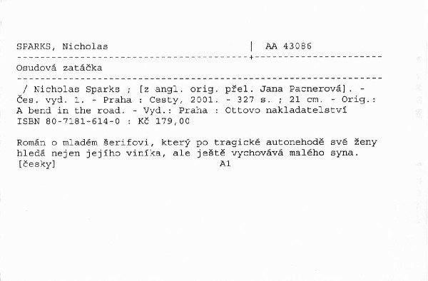 | Autor | Nicholas Sparks ; [z angl. orig. přel. Jana Pacnerová] |