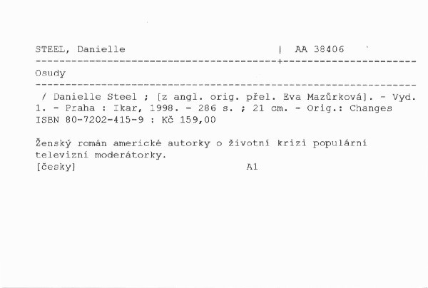 | Autor | Danielle Steel ; [z angl. orig. přel. Eva Mazůrková] |