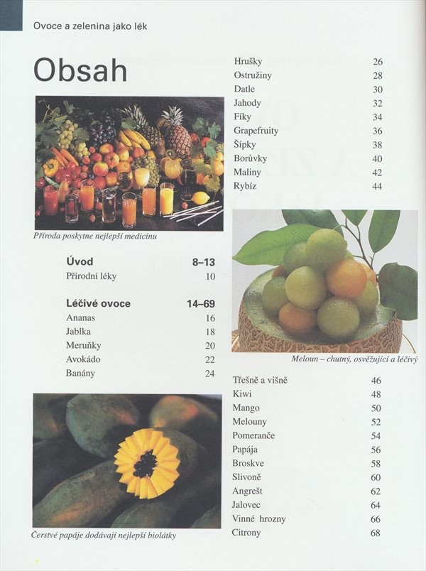 Předcházení nemocem a léčba bez vedlejších účinků prostřednictvím správné výživy - ovocnými a zeleninovými pokrmy. Přehled a popis jednotlivých druhů ovoce a zeleniny (řazení podle německého originálu), charakteristika, původ a rozšíření, léčivé účinky. U každého druhu zeleniny nebo ovoce je návod na přípravu zdravého jídla.